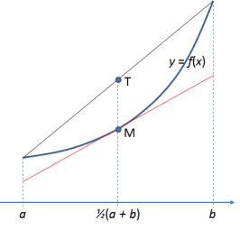 Masih ingat ketaksamaan m–r–t yang menyatakan hubungan antara median, rerata, dan nilai tengah dari suatu data diskrit kan? Nah, untuk data kontinu, kita mempunyai ketaksamaan Hermite-Hadamard, yang lebih gamblang.