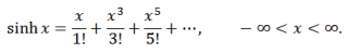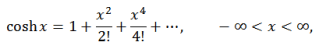 Nah, mengingat cosh x dan sinh x merupakan kombinasi sederhana dari ex dan e-x, kita dapat memperoleh deret pangkat untuk kedua fungsi trigonometri hiperbolik tersebut, yaitu
