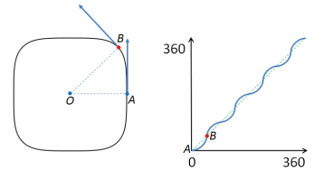 Tengok gambar persegi, segilingkaran, dan lingkaran yang terdapat di sebelah kiri. Ada hubungan yang menarik antara grafik sudut deviasi pada ketiga bangun datar ini. Fakta bahwa segilingkar terletak di antara persegi dan lingkaran tampaknya terbawa ke grafik sudut deviasinya.