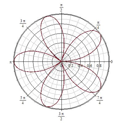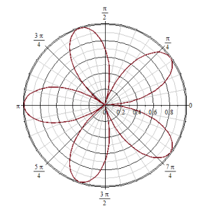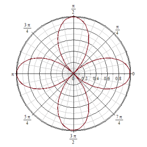 Ketika membaca artikel sebelumnya tentang bunga berdaun empat, Anda mungkin bertanya: bagaimana kalau fungsi sinus dalam persamaan polar bunga tersebut diganti dengan fungsi cosinus? Jawabannya adalah: akan tetap diperoleh bunga berdaun empat, hanya posisi daunnya berbeda. Persisnya, bunganya akan berbentuk seperti pada gambar di bawah ini: