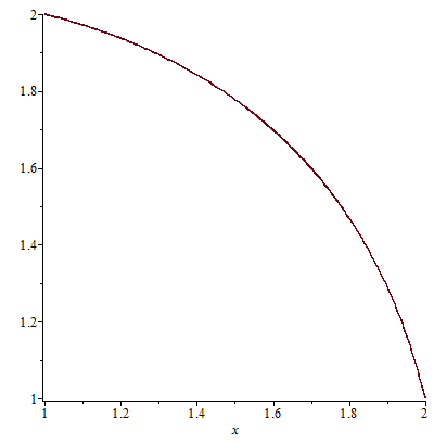 Serupa dengan contoh di atas, fungsi juga mempunyai titik tetap di antara 1 dan 2. Sila selidiki apa yang terjadi bila Anda menerapkan Metode Titik Tetap dengan hampiran awal