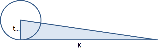 Bila kita sekarang kita tinjau segi enam beraturan yang memiliki keliling K, maka luasnya sama dengan luas segitiga dengan alas K dan tinggi t6.