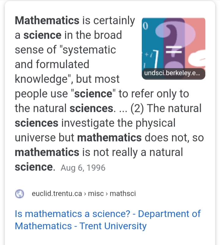 Banyak yang bilang matematika itu bukan ilmu. Namun, apa yang dimaksud dengan ilmu? Jangan-jangan, definisi yang dipakai tidak sama.