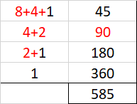 barangkali ada yang jeli melihat bilangan 1, 0, 1, dan 1 pada baris ke-1, ke-2, ke-3, dan ke-4, yang terdapat di kolom pertama. Dibaca dari bawah, rangkaian bilangan ini tidak lain merupakan representasi biner dari bilangan 13: