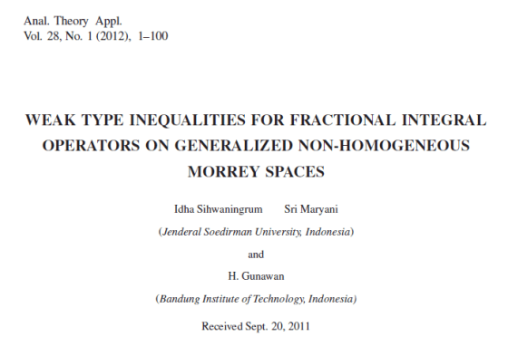 Masih melanjutkan hasil penelitian tentang ketaksamaan lemah untuk operator integral fraksional pada ruang Morrey, pada tahun 2015 saya bersama dengan … More